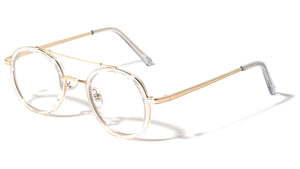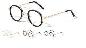 Clear lenses aviators featuring metal rounded frames. Shiny metal finish with plastic tips. Imported.  Clear lenses UV400, UVA & UVB protection Please note that these wholesale bulk glasses come packed...