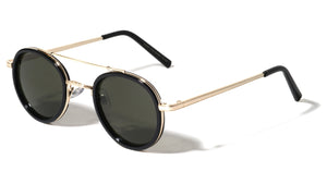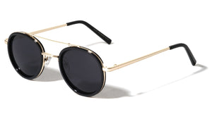 Retro aviators featuring a metal frame on plastic top frames. Thin metal top brow bar with plastic nose bridge. Smoke lenses provide complete UV protection.  UV400, UVA & UVB protection...