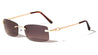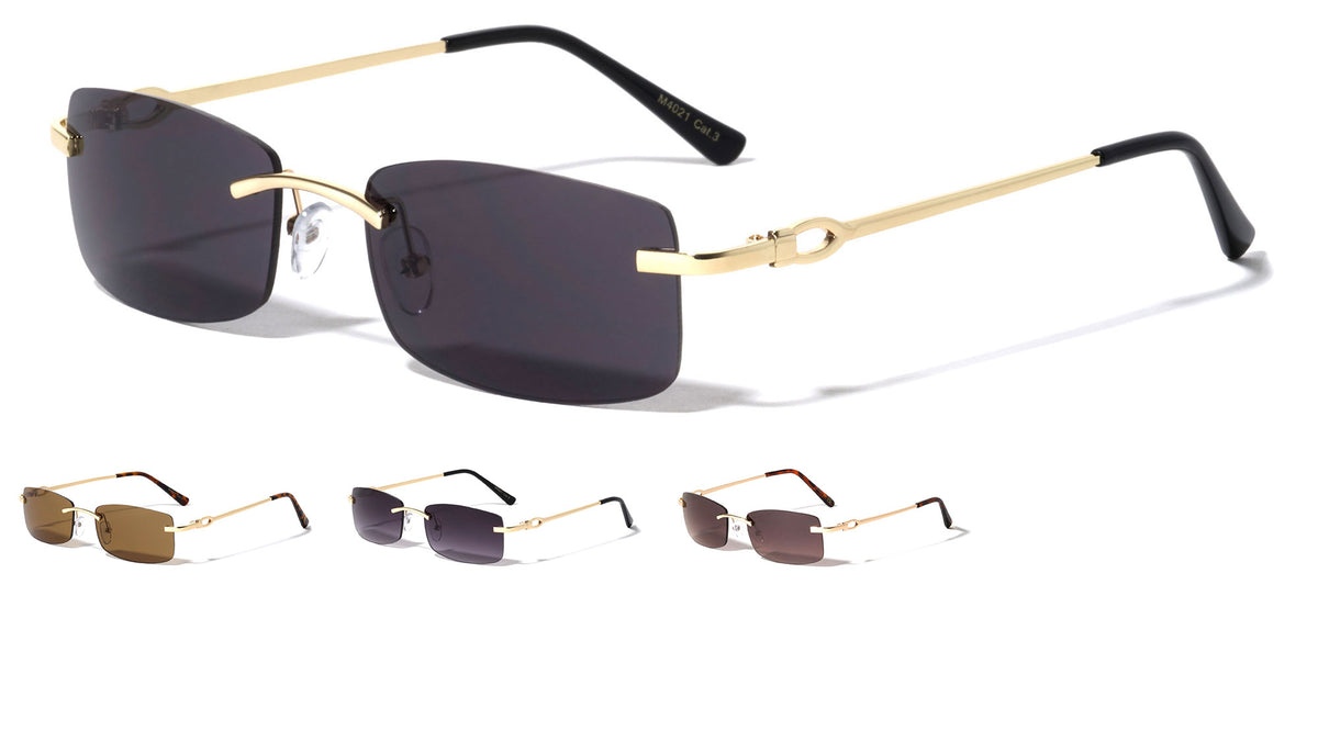 Metal rectangular sunglasses in a rimless style. Smoke lenses provide complete UV protection. Shiny metal finish with plastic tips.