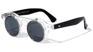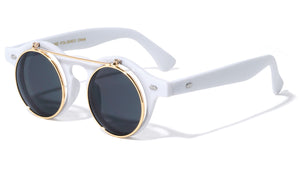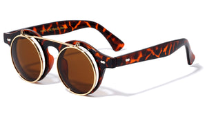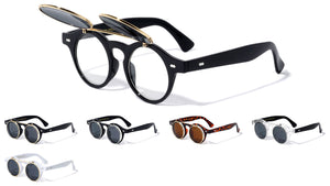 Classic retro sunglasses featuring flip frames to reveal clear lenses. Shiny wood finish. Provides complete UV protection.  Flip lenses UV400, UVA & UVB protection Please note that these wholesale sunglasses are...