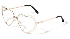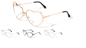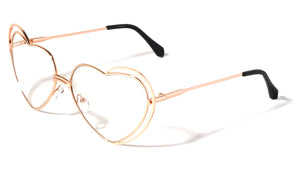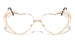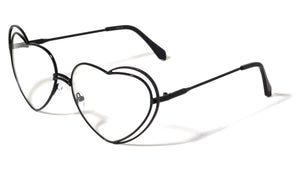 Heart shaped clear glasses with metal cutout accent on frames. Shiny metal finish with plastic tips. Clear lenses with UV protection. Clear lenses Heart shaped lenses UV400, UVA & UVB...