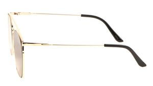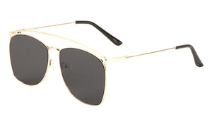 Aviator sunglasses featuring a shiny metal solid browline. Stripe detail on legs. Shiny finish with smoke lenses that provide complete UV protection.  These wholesale bulk sunglasses come packed in sets...