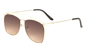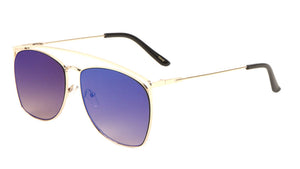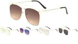 Aviator sunglasses featuring top color frames with gold bottoms. Shiny metal finish. Lenses provide complete UV protection. These wholesale bulk sunglasses come packed in sets of 12, with an assortment...