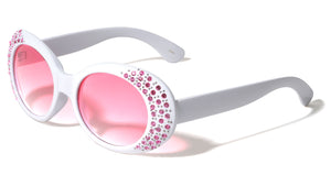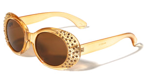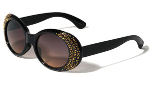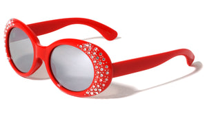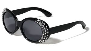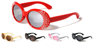 Plastic sunglasses featuring oval frames with rhinestones. Smoke or color lenses provide complete UV protection. Shiny plastic finish.  Rhinestone design UV400, UVA & UVB protection Please note that these wholesale...